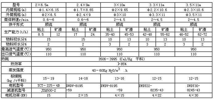 五、雙筒烘干機(jī)技術(shù)參數(shù):